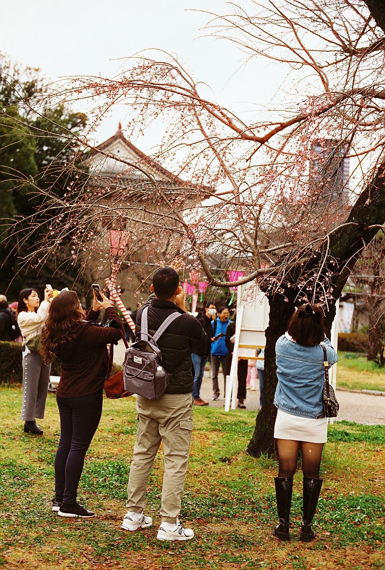 People trying to capture cherry blossoms while they can. Japan, March 2024.